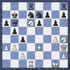 32. Ve4 lidsky přichází s otazníkem. Jak se bílý vypořádá s prudkým f5? Odpověď zní, že nijak: bílému to totiž vůbec nevadí. Ale zkuste si tomu rozumět v časovce.