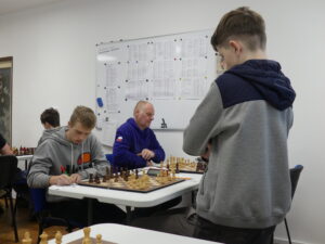 Chmelař-Řehák 0:1 Nejdelší partie dne na výdrž… a tu měl zkušený Letohraďák. Jožka dlouho držel rovinu, spíš o fousek lepší, žel nevymyslel aktivní plán. Na královském pozici zablokoval, na dámském mu zůstalo slabé áčko, na které se soupeř zaměřil, posléze je získal a plusfloka trpělivě uplatnil.