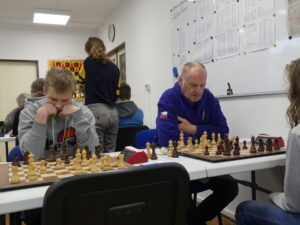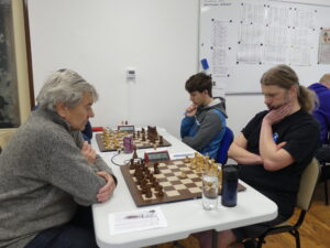 Mládež ještě v sobotu potrénovala v klubovně, zatímco já cestou z Prahy spíš přemýšlel, jak do třetice neudělat na první desce ostudu. Onlajny přislíbil nahodit Martin Šmajzr, Ondru Hejdu jsme zase pískáním chtěli z bleskového tempa zpomalit alespoň do rapidového, neb vážné partie bere nevážně.