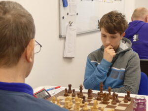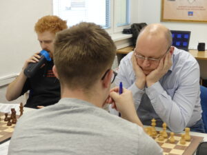 To už je na mě moc vysoká škola kontrašpionáže 🙂 Prvním třem šachovnicím soupeře jsme vypnuli přípravu naší nekompletní sestavou (což ale není žádná výhoda, na mě se těšil do třetice za tři roky Kuba Ježek), já jsem s Adamem měl na šachovnici nakonec taky něco jiného, než co jsem plánoval. Bohužel jsem nadějnou pozici dokázal zazdít jedním naprosto idiotským tahem, pak už to bylo o ničem.