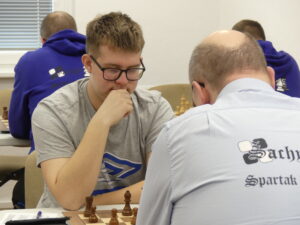 Pokorný Jan-Lorenc Adam 0:1 Dopadl jsem v podstatě stejně jako Ivoš Prax. Se soupeřem, který jde citelně nahoru, jsem v králce postavil perspektivní pozici, s prostorem, lepším časem, krásnými figurami a citelnou výhodou. Půlka nabídnutá z pozice síly, Adam bojovně odmítl… načež jsem hned v dalším tahu vyrobil strašlivou poziční minelu. Druhá půlka partie už bylo marné cukání v méněcenné pozici, bez jakékoliv šance s precizně hrajícím drtičem 2000+.
