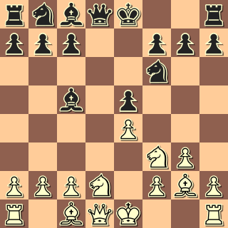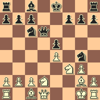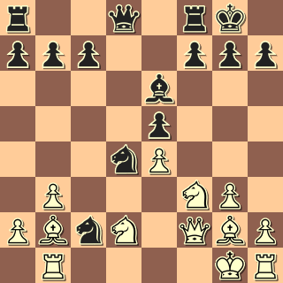Lepší bylo asi držet pěšce po f6, ale tím bych doznal, že útok skončil a za figuru mám jakousi poziční, dočasnou kompenzaci, proto jsem radši začal pálit poslední mosty. Nyní měl bílý pokračovat důrazně 14. Jxe5! protože nejenže konzumuje pěšce, ale navíc podrývá černou chloubu na d4. Případně u partie se mi zamlouvala možnost Jxd4 a Sa3, čímž vyhání věž z f sloupce. Bíly se ale začal chytat na lup a po 14. Sb2 f5 15. Jxd4?! (lepší exf5) Jxd4 16. Sxd4 fxe4 17. De3! (jediné, ale dostačující, při jiných pokračováních by stál černý o dost lépe) exd4 18. Dxe4 Dd6! jsem byl spokojený.