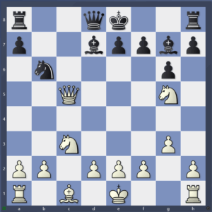 Partie z italského komplexu. Bílá si vzala centrálního pěšce, ale ztratila možnost rošády.