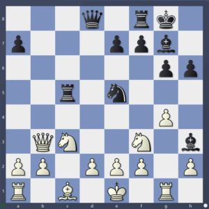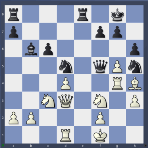 No a pak se vlastně strašně dlouho nic nedělo. Černá má poziční výhodu, drobný materiál k tomu a hlavně krále zcela v bezpečí. Může si proto počkat…