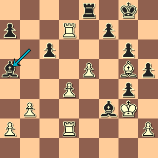 Tady jsem byl velmi spokojen, dvojice střelců řádí po všech možných polích, mé fantazii už se rýsovaly matové obrazce … 40. Vxa7!? A bílý se chytá šance změnit ráz hry a hledat výhodu při nestejnopolných střelcích! Opravňuje ho k tomu volný a pěšec a slabá černá pole kolem černého krále. 40. … Sxd2 41. Sxd2