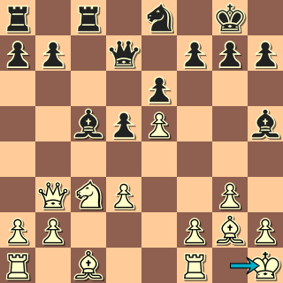 Protože jsem se v zahájení dostal do pozice, se kterou nemám zkušenosti, odbočil jsem radši ze svých pozic úplně, pevně podepřel pěšce na d5 a bavil se pohybem v mně neznámém terénu. Ale stojím dobře. Aktivita na dámském křídle se nabízí, zvažoval jsem Vc6, motor radí a5, dokonce k zisku pěšce vede Sc5-d4xc3 s dalším Se2 (to jsem vůbec nezvažoval, dát střelce za jezdce mě nenapadlo). 15. … Jc7?! Pořád mi bzučela v uších zásada, že stojí-li jedna figura špatně, je špatná celá hra. Proto snaha rozehrát jezdce, ale dává soupeři skulinku ke konsolidaci pozice. 16. Se3 To teď právě jde, po vidli d5-d4 má bílý výmluvu Je4, protože Jc7 přerušil krytí černého Sc5. 16. … Ja6 17. d4 Sf8?! Po 17. … Sb6 by hrozilo Vc4 s tlakem na d4, takže bílý by zatím neměl čas na aktivitu. Já jsem to zamítl kvůli jezdci na a6, který by neměl pole b4 a tak by stál opět mimo hru. 18. f4 Sg6 19. g4 Zajímavé mohlo být okamžité 19. f5!? s obětí kvality po 19. … Sxf5 20. Vxf5 exf5 21. Sxd5. 19. … Jb4 Tak, po pěti tazích konečně jezdec hraje. Ale bílý za tu dobu něco málo stihnul 😉. 20. Vf2 Hrozilo Sc2. (20. f5!?) Vc6?