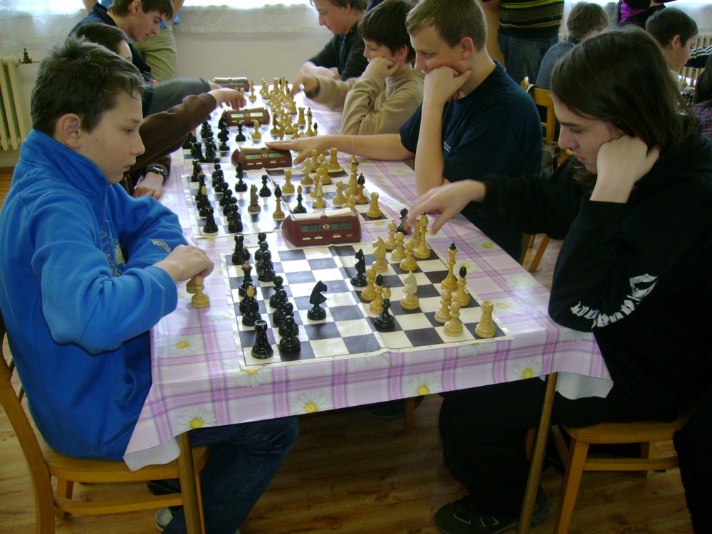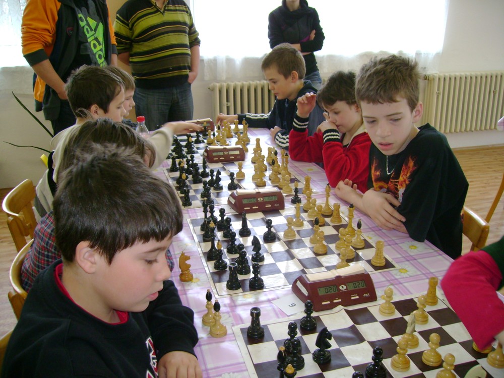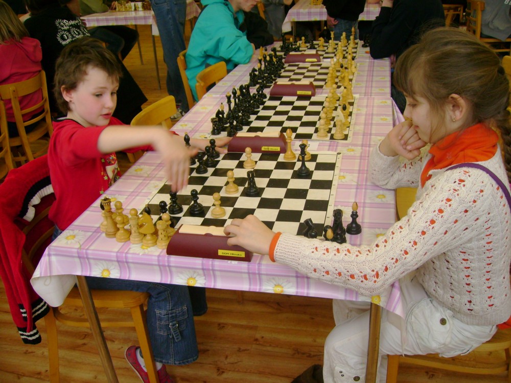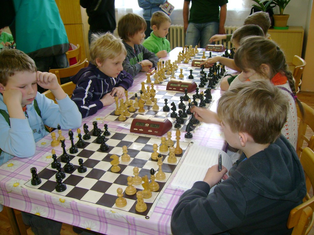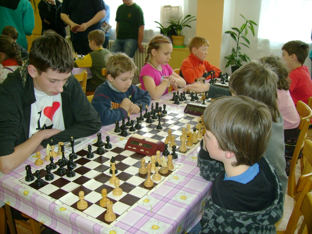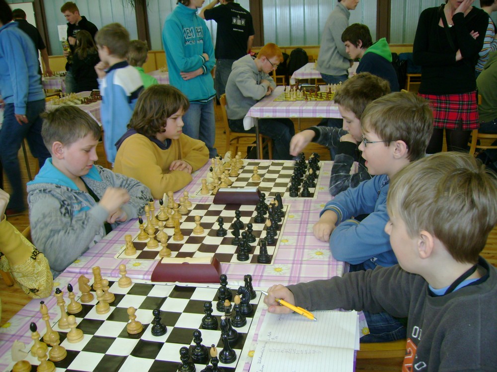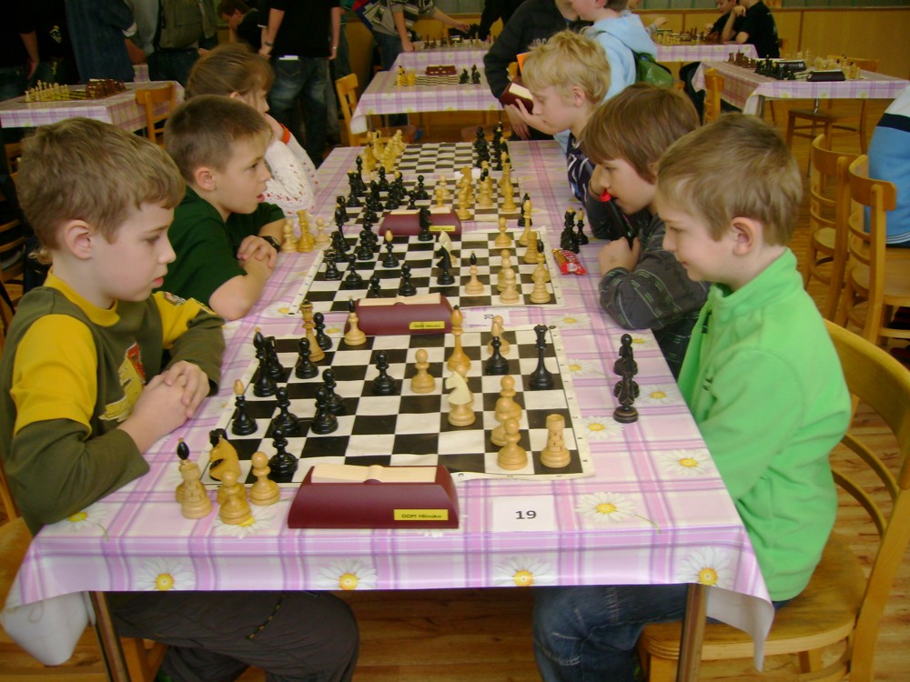 Kateřina Šmajzrová zas tak často nehraje; porážela slabší, půlila s trojkama; prohru si bohužel schovala do posledního kola na druhou šachovnici: o dvě hlavy menší Lukáš Pavlíček ukázal, že obětní Grecovu variantu má narozdíl od Katky nastudovanou. 4,5/7, 10. místo, 2. mezi dívkami, nejlepší z našich, ještě aby ne :-). Vít Holásek hrál svůj solidní standard, moc však nestíhal  hrací tempo (ve třetím kole přehrál Dvořáka, ale nebyl schopen zrychlit a spadnul). 4,5/7, 13. místo, dejme tomu. Veronika Šmajzrová po slabším výsledku ze Třebové dala vzpomenout na Orlickou šachovnici. Dařilo se jí, bojovala proti mnohem větším klukům, blýskla se výhrou nad Lukášem Paukertem. 4,5/7, 14. místo, 3. mezi dívkami, v tomto případě rozhodně úspěch! Martin Paukert už nehrál ani nepamatuju, tady se po startu 1/3 zvedl, vyhrál pak třikrát v řadě, mj. nad Monikou Ryšavou a předstihl mnoho našich zkušenějších hráčů (včetně staršího bráchy). 4/7, 18. místo. Vašek Grundman pokazil první kolo proti Marušce Vaškové, pak to bylo dobré, škoda posledního kola. 4/7, 19. místo. K šachové knížce, kterou studoval, ve vlaku, přidal další, kterou vyhrál – a nikdo z hráčů před ním po ní nesáhl! Lukáš Paukert musel po prohře s Verunkou Šmajzrovou dohánět terén ze zadních pozic. 4/7, 21. místo, na Lukáše sotva průměr. Naše čtyřbodové uzavírá Jirka Píše, i on mohl chtít po úspěchu ve Třebové (postup do finále kat. H12) víc. 4/7, 22. místo.
