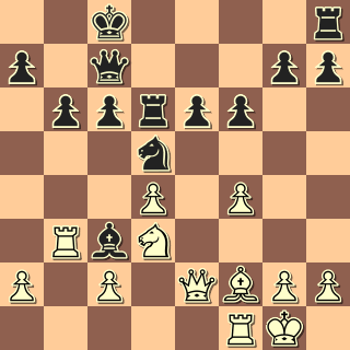 Zahájení se mi povedlo, vypadalo to, že budu útočit na dámském křídle. Po 17. h3 to asi chtělo něco přesnějšího než 17. … Sd7?! , snad 17. … Jfd7. Soupeř se rozehrál, ale už okolo 25. tahu hrál na minutě, takže jsem nepřijal nabídnutou remízu, optimisticky odevzdal pěšce a hledal šance na křídle královském.