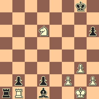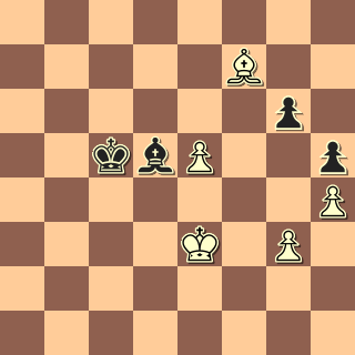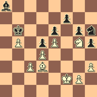 Koncovka je samozřejmě hladce vyhraná. Černý střelec je mrtvá figura, černý jezdec je připoután k obraně pole f7, béčko je silný volňák, černí pěšci naopak čekají, až je bílý začne od pole f7 sbírat. JENŽE: v přemíře dobré nálady jsem si vůbec neuvědomil, že Sa8 přejde na d7 a napadne pb5. Převod Jg5-h7-f6-e8-d6 jsem sice viděl, ale říkal jsem si, že počká. 38. Ke2? Sb7 39. Kd2?? Sc8. Ó hrůzo! Takhle banálně přijít o pěšáka! Pokusil jsem se z pozice vylhat 40. c4 dxc4 41. Sxc4 Sd7 42. d5