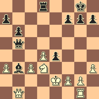36. Vxf5 b4 37. cxb4 axb4 38. axb4 cxb4 39. Ve5 b3 40. Ve1 Va8 41. Vb1 Va2 42. V2d1 d2 Vznikají tu různé dekorativní pozice. Teď už bych se vzdal, jenže na půlminutě jsem na to neměl čas 🙂 43. Jg2 Se2 44. Je3 b2 45. Jf5 Sxd1 46. Jxd6 Va1