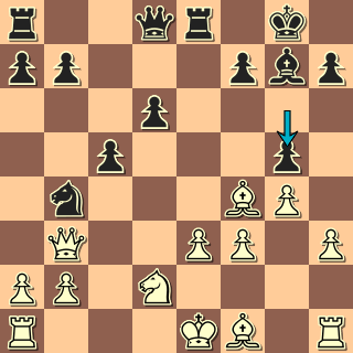 22. … Df6!? Objektivně otazník, ale nechce se mi ho tam dávat, diagonála h8-a1 je moc pěkná a útok na b2 je správný, jen se dal provést ještě lépe: 22. … Jxd1! Takový divný tah, přece nebudu tu napadenou věž opravdu brát? 😉 Ale cílem je uvolnění pole pro dámu: po 23. Vxd1? Df2 je už pole b2 nekrytelné. O Jxd1 jsem příliš neuvažoval hlavně kvůli obecné zásadě brát radši věž h, aby po dobrání jezdce věží stála zbylá věž v koutě, mimo hru. Ale zde 22. … Jxh1 nestačí pro 23. d7, kdežto po 22. … Jxd1! 23. d7 přijde Sxb2+, jezdec z d1 (byť odsouzený k zániku) totiž na b2 útočí přímo.