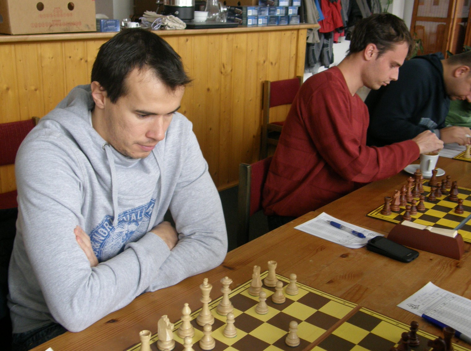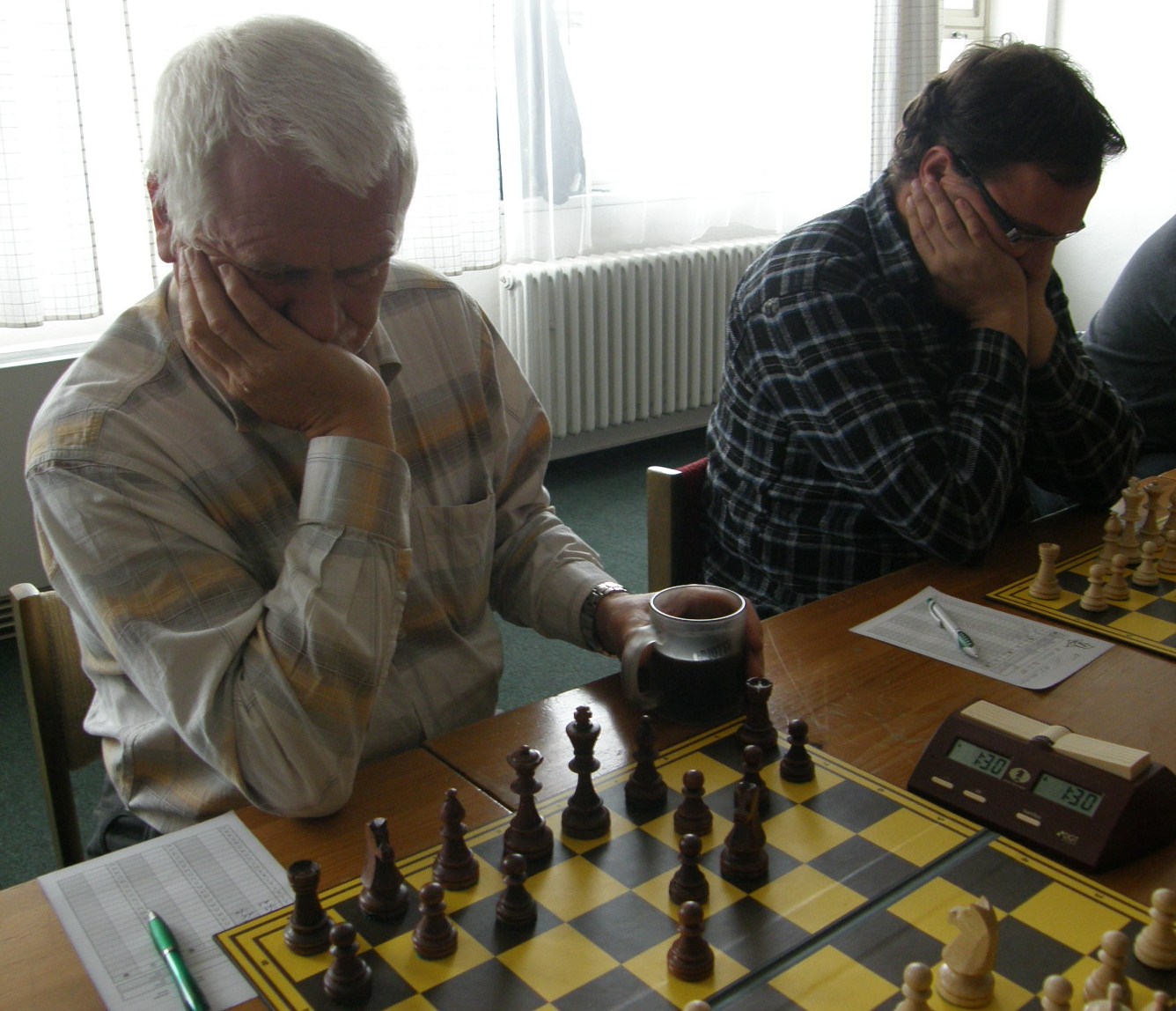 Což o to, tahle plichta by se ještě snesla, ta následující již méně. Bohužel debutující Pavel Doleček nedostal potřebnou instruktáž od zkušenějších, hlavně kapitána, a v jasně vyhrané pozici (dva pěšci víc s útokem na černého králíka) nabídl remízu – nadšený soupeř mu ruku málem urval. 1 : 1 a nedýchá se nám právě nejlépe.