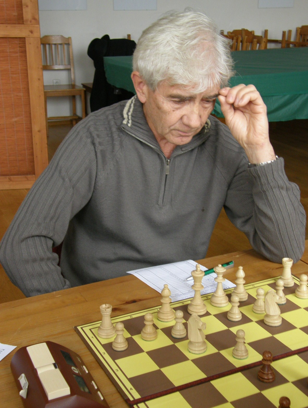2. Müller – Volf  0:1 nějaká dra dámským pěšcem se Sg5, kde černý přistoupil na typický skok Je5, otravnou kobylu vyměnil, rochnul si nadlouho a neměl si asi nač stěžovat. Další průběh partie neznám, Jarda měl snad nějakého floka navíc, ve věžovce jej za aktivitu obětoval. Prý to byla remíza, ale říkejte to Volfimu 🙂 Heroický výkon našeho mazáka, navíc černými figurami, smekám! (Jarda dohrál šestý v pořadí)