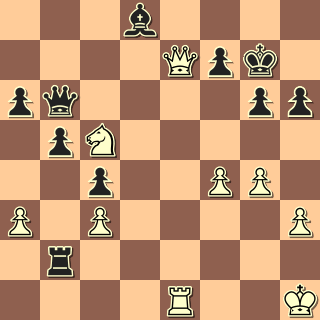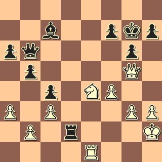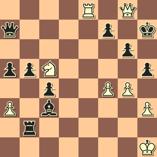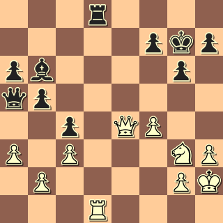 Dopočítal jsem že ne. černý prachsprostě vezmě dámou a potom dobere střelcem dámu a do koncovky mu zbyde jeden mrňavej k dobru. Zkusíme teyd zaútočit na slabé pole f7. Je pěkně bílé a černopolný střelec ho dost dobřě krýt nemůže. Pak následovala érie slabších tahů černého která vyvrcholila nekrytelným útokem bílého na černého monarchu. Závěrečná pozice