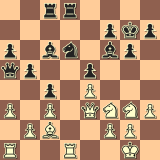 25, ….. Sxf5, f4 Jxe4, Sxe4 Sc7, Kh2 Sb6, Df3Vxd1, Vxd1 Sxe4, Dxe4