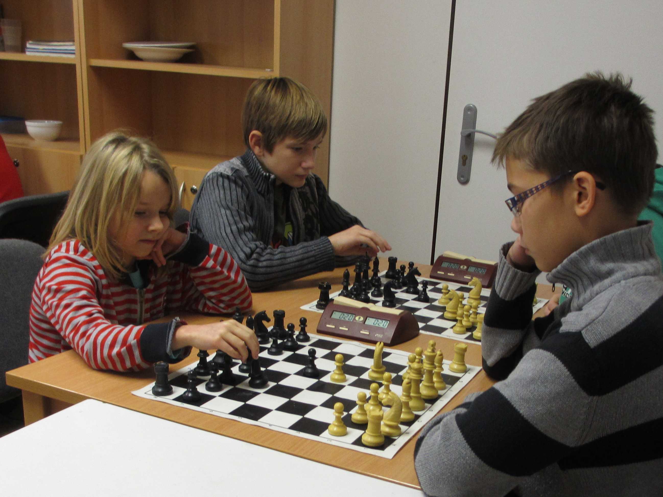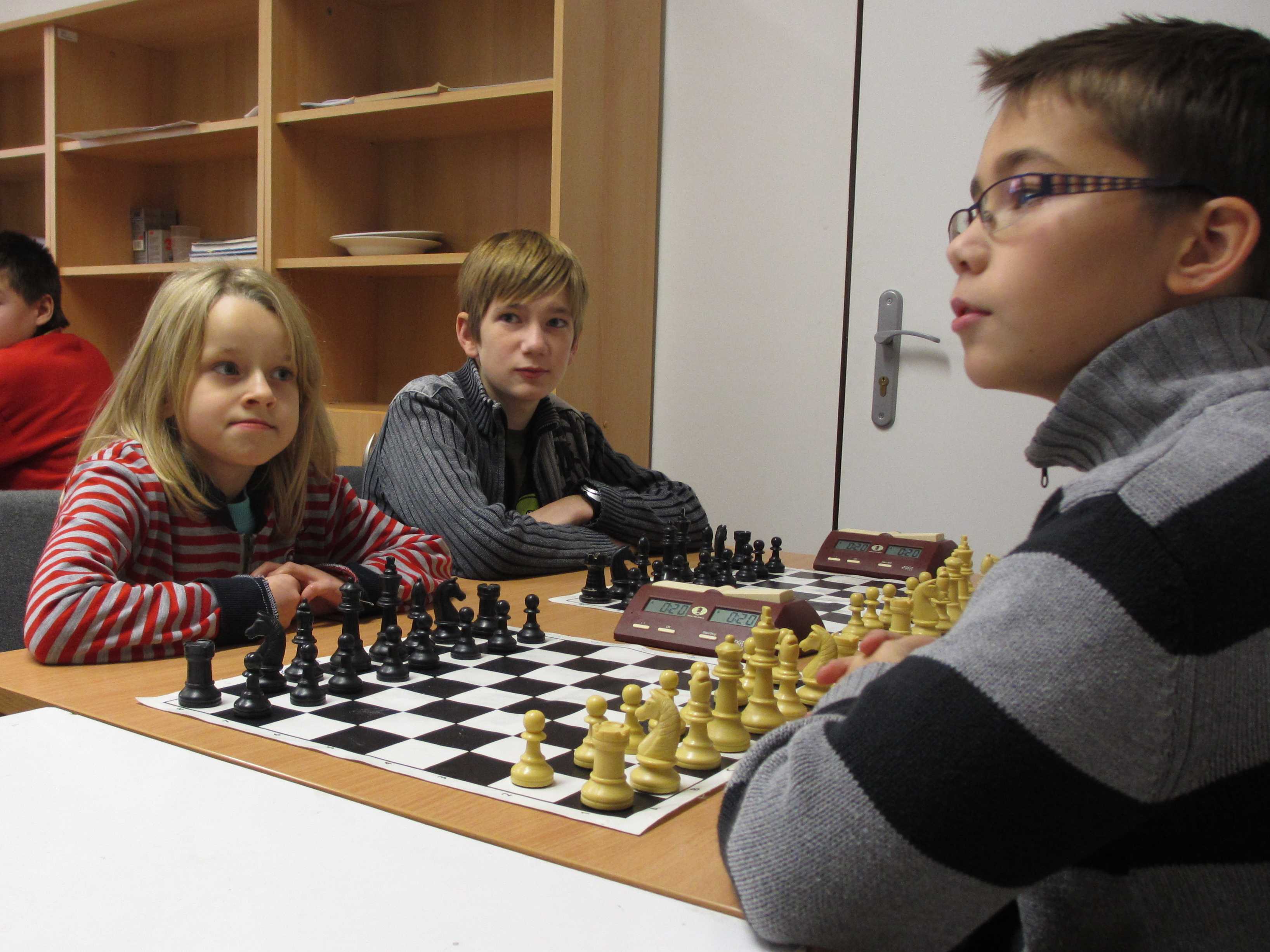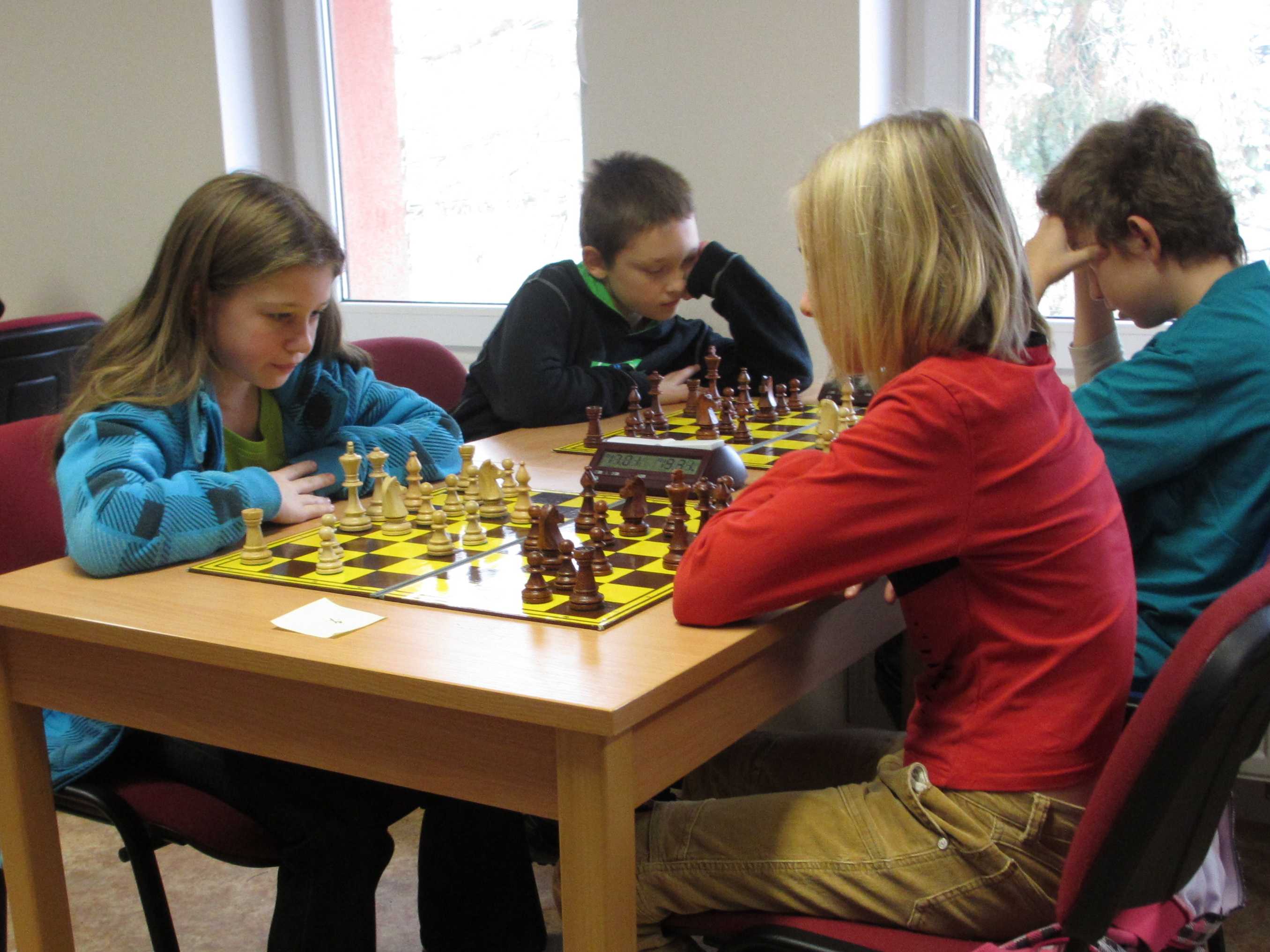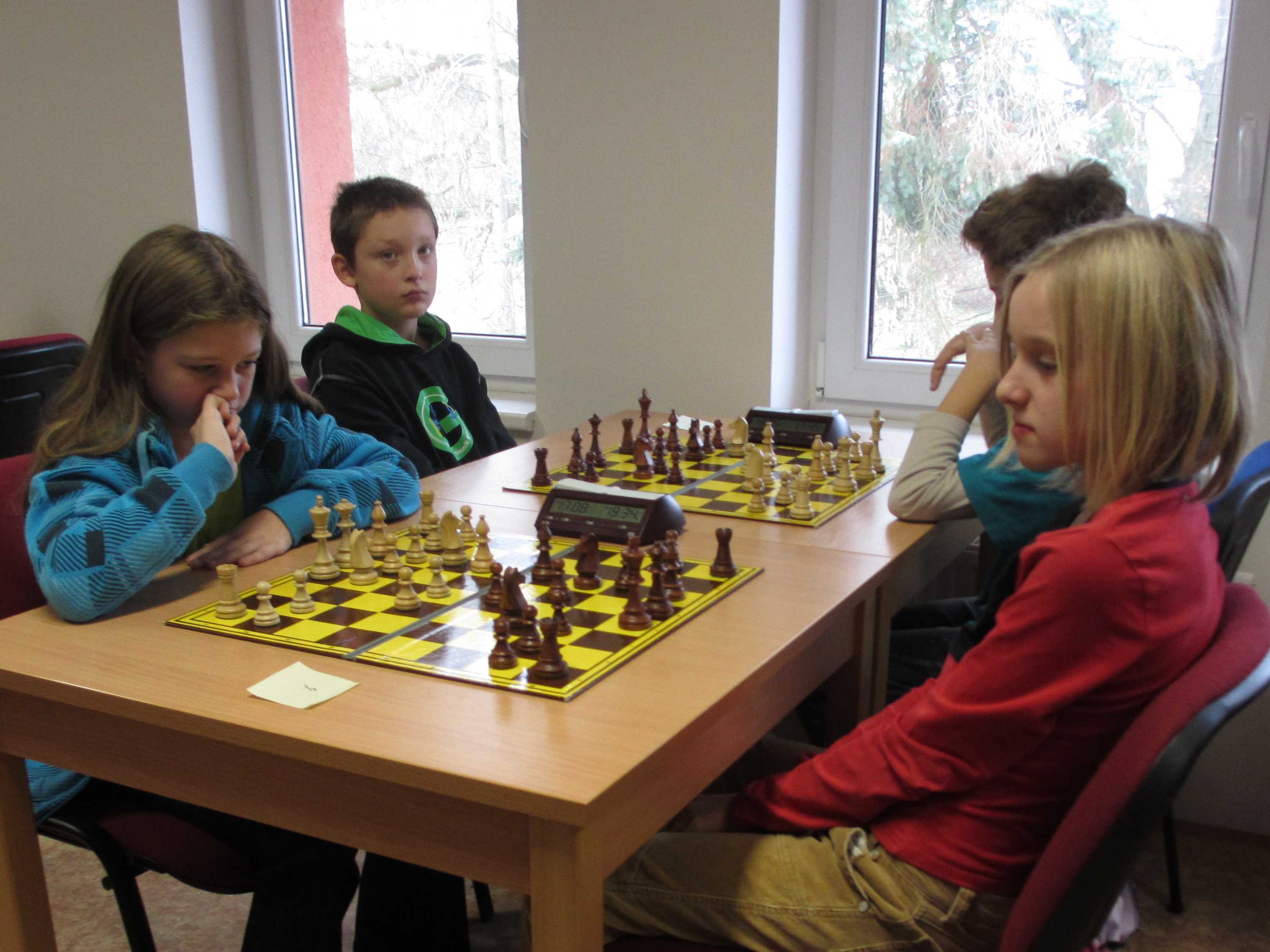 V početnější kategorii měl Vojta potvrdit své nasazení ve špičce, Jirka Píše svoje viditelné zlepšování, Veronika Šmajzrová svoji zkušenost navzdory tréninkovým mezerám, Kačka Dudlová měla vyzkoušet, jak se tu hraje vítězce desítek, Natálie Hrůšová se vypořádat s postupem do vyšší kategorie, Verunka Holásková si spravit chuť po nezdařených dvanáctkách a obě naše nejmenší, Markétka Holásková a Dominika Šmajzrová odehrát sedm partií podle pravidel. Řekl bych, že až na Vojtu se to všem povedlo.