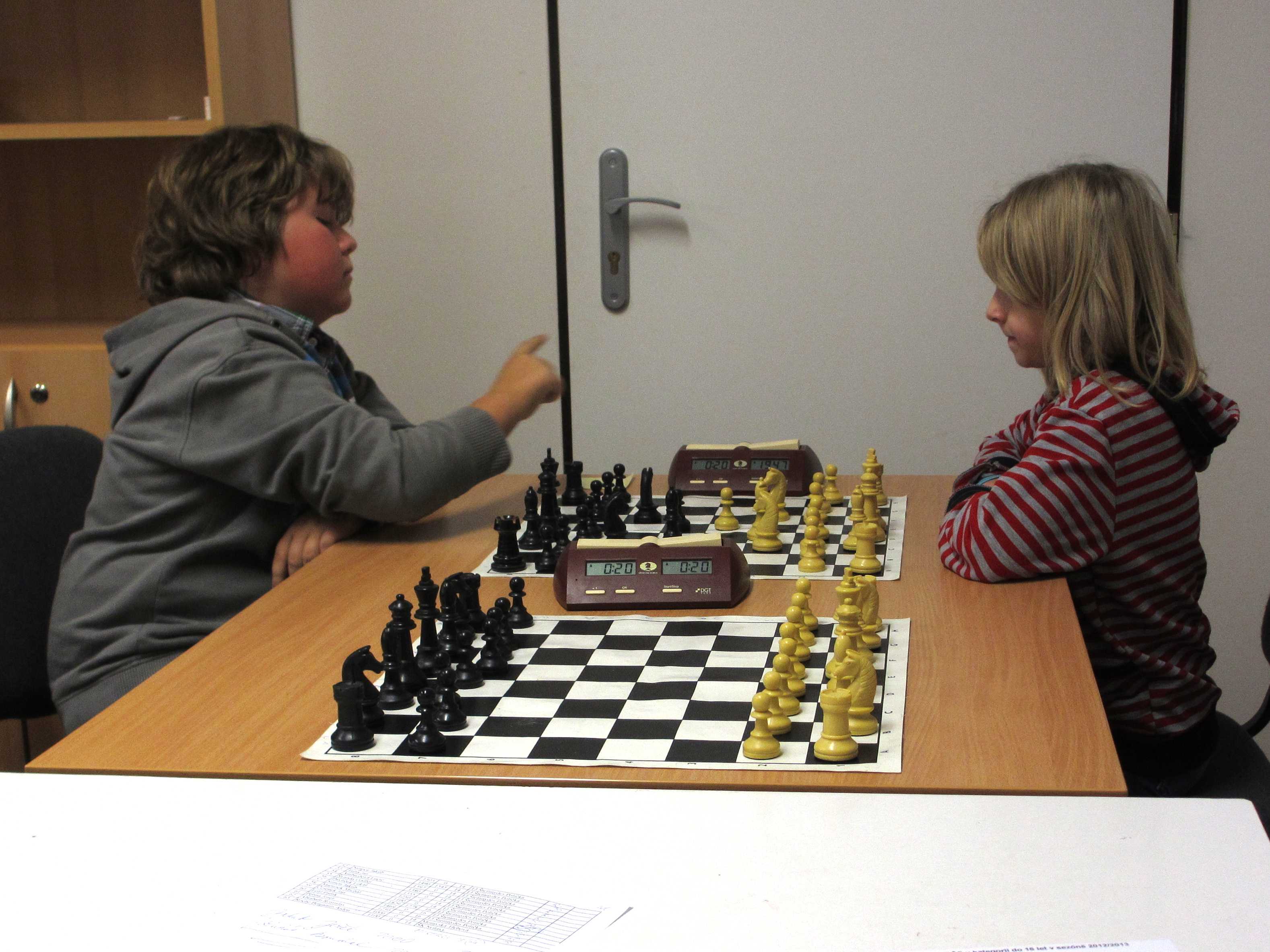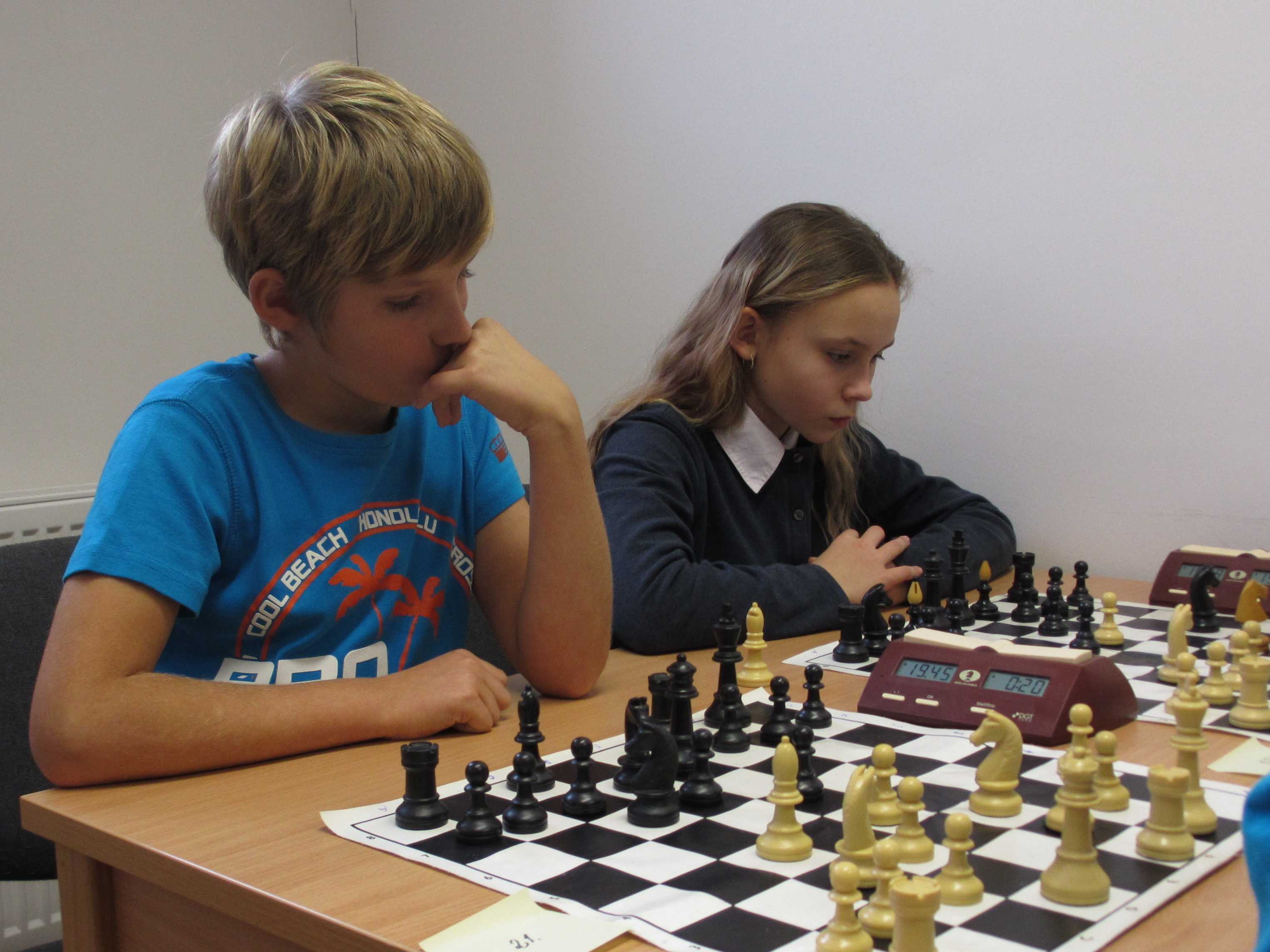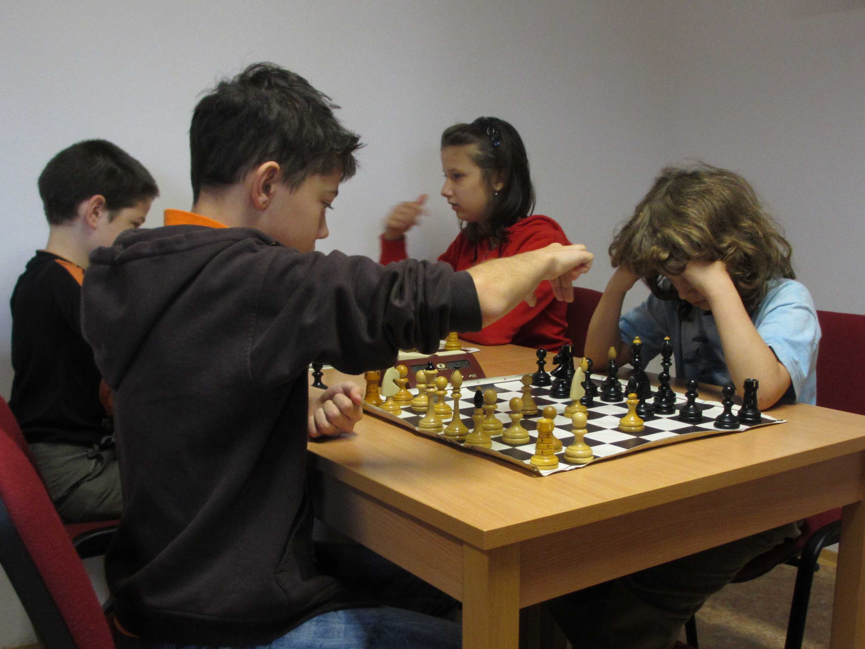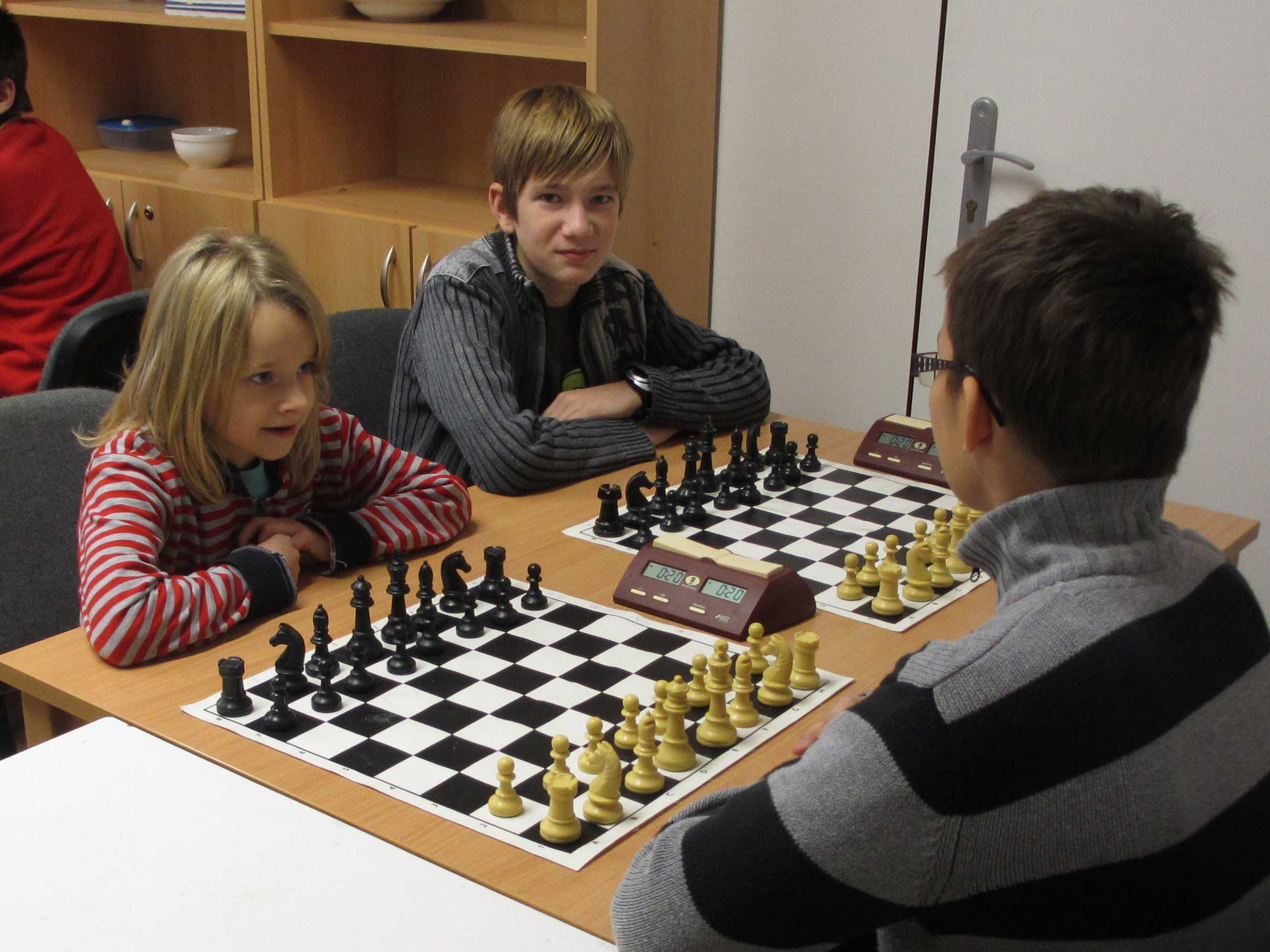 V početnější kategorii měl Vojta potvrdit své nasazení ve špičce, Jirka Píše svoje viditelné zlepšování, Veronika Šmajzrová svoji zkušenost navzdory tréninkovým mezerám, Kačka Dudlová měla vyzkoušet, jak se tu hraje vítězce desítek, Natálie Hrůšová se vypořádat s postupem do vyšší kategorie, Verunka Holásková si spravit chuť po nezdařených dvanáctkách a obě naše nejmenší, Markétka Holásková a Dominika Šmajzrová odehrát sedm partií podle pravidel. Řekl bych, že až na Vojtu se to všem povedlo.