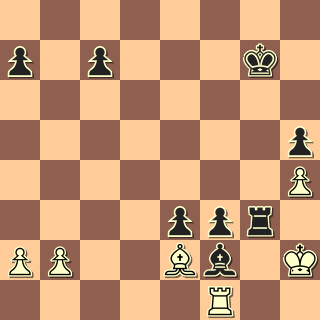 S bílým to vypadá zle, ale tady se mu naskytla šance, kterou využil. Jestli byl poslední tah černého f4-f3, tak to byla chyba! 1. Vxf2! exf2 (minimální šanci to zkoušet dávalo ještě 1. … fxe2!) 2. Kxg3 fxe2 3. Kxf2 Kf6 4. Kxe2 Kf5 5. Kf3! Právě včas do opozice. 5. … c5 6. b3 a5 7. a4 1/2 Tak takhle hrály čtvrté desky vítězných družstev.