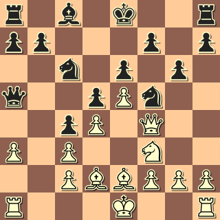 Tady je naopak ukázka lítého boje z první desky. Vašek se soupeře nezalekl a francouzskou pozici postavil lépe: černý pěšec na c4 zablokoval aktivitu černého na dámském křídle a ten na g6 zase oslabil křídlo královské. 1. g4! Okomentuju to jen zběžně, jednak nemám čas, jednak na čtvrthodinový rapid nelze klást přísná měřítka, tam nadělá chyby každý. Chci hlavně zaznamenat, jaké to bylo drama. 1. … Jfe7 2. Df6 Vf8 3. O-O?! Král e1 kryje Sd2, na g1 nestojí lépe. 3. … h5 4. Jg5?! Sd7?! Zde i jindy šlo Jxd4, přišlo to až mnohem později. 5. gxh5 O-O-O 6. Jxf7 gxh5 7. Jd6+ Kb8 8. Dh4 Jf5 9. Jxf5 exf5?! 10. f4? Jxd4 11. Df2? Jxe2+? Právě, když král nemá ústup na f2, lze hned 11. … Vg8+! 12. Kh1 Jxe2 13. Dxe2 Sc6 (jako později v partii). 12. Dxe2 Vh8 13. Vfb1 Vdg8+ 14. Kh1? Ne, tam ne! Proč? 14. … Sc6! Proto. 15. Vf1 d4+ 16. Vf3 Sxf3+?! 17. Dxf3 h4 18. Vb1 b6? Teď zase dostane šanci bílý. Tady zbývala hráčům asi minuta a půl (s bonifikací 5s). 19. Dc6! Da6?! 20. Dd6+?! 20. cxd4 20. … Ka8 21. Dc6+ Db7 22. Dxb7+ Kxb7 23. cxd4 h3 24. Se1 Vg2 25. Vc1 Vhg8 26. Sg3 Kc6 27. c3 Va2 28. Kg1 Kd5 29. Kf1? Vxg3! 0:1 Tak takhle hraje okresní špička.