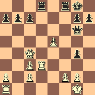 21. … Vxd3?!?! Nemožňák! A černý musí hrát nesmyslně věží: 21. … Vd5(??) 22. Dxd5+ Kh8 23. Vad1 h6 24. e6 Jednoduše: mám volňáka, tak kupředu. 24. … Vf5? 25. De4 Df6 26. e7 g6 27. e8D+ Kg7 28. Vd7+ Df7 29. Vxf7+ Vxf7 30. D4e5+