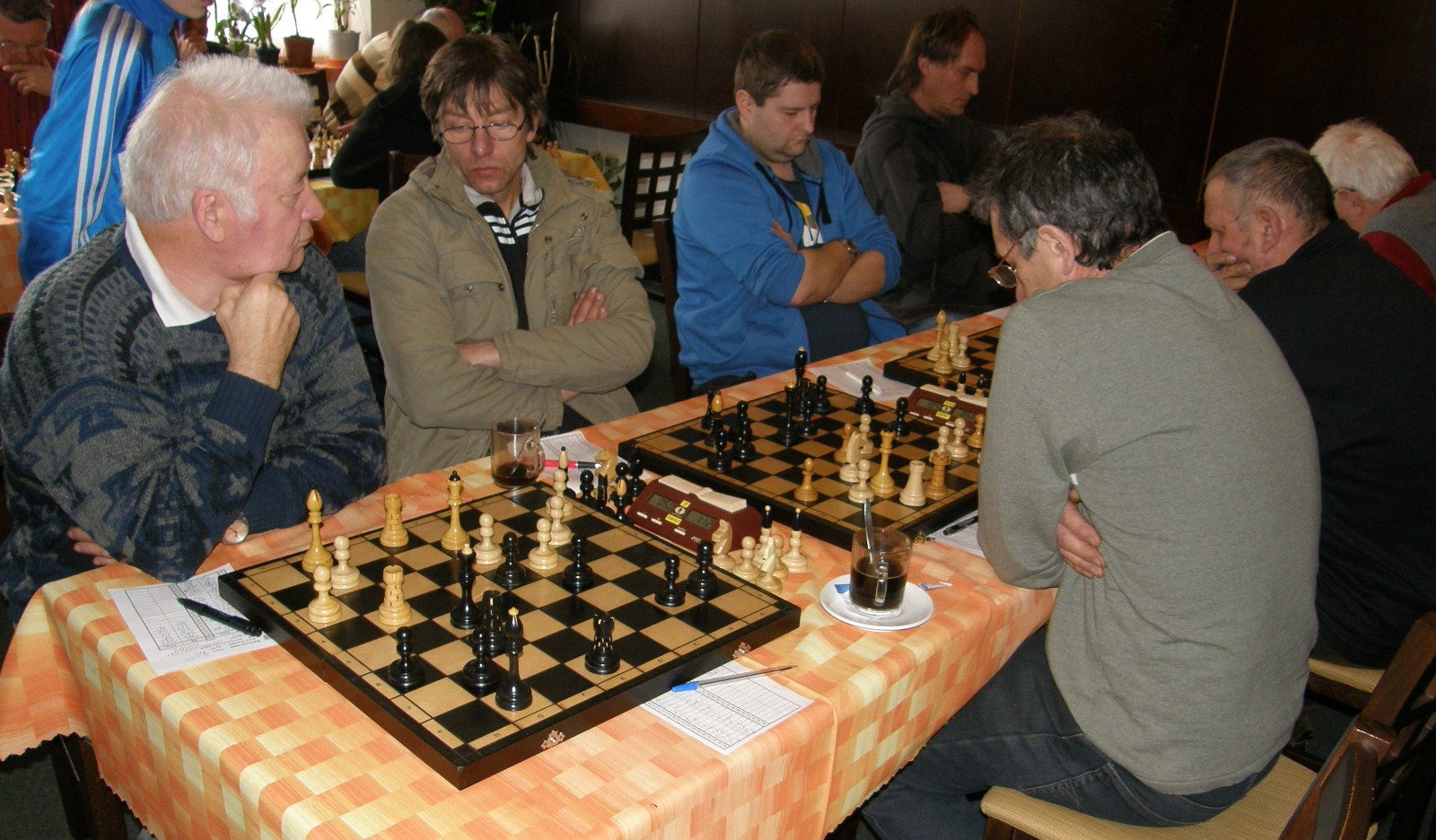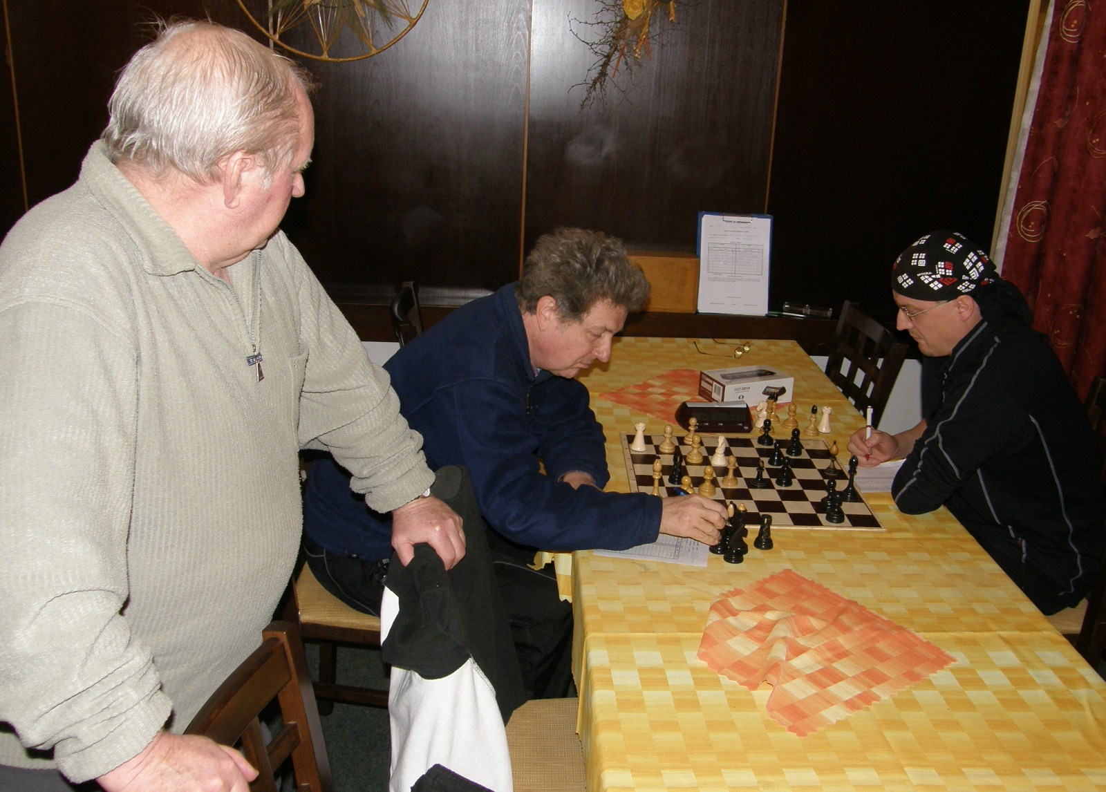 A zatímco mlaďáci z Oustí dávají mazákům z Kunvaldu pořádně pohulit, my začínáme s bodovou sklizní, která vede, po dlouho trvajícím půstu, konečně k vítězství. První smečuje Pavel Doleček, jehož zahájení proti mladičkému Janu Řehákovi ve mně moc optimismu nebudilo – ale v KSS jsou nějaké prognózy leda k… Dva dvojpěšce v italské vyvážil útok na krále po f sloupci, bílý přehlédl odtažný šach a vlezl si do matu – 1:0 vedeme.