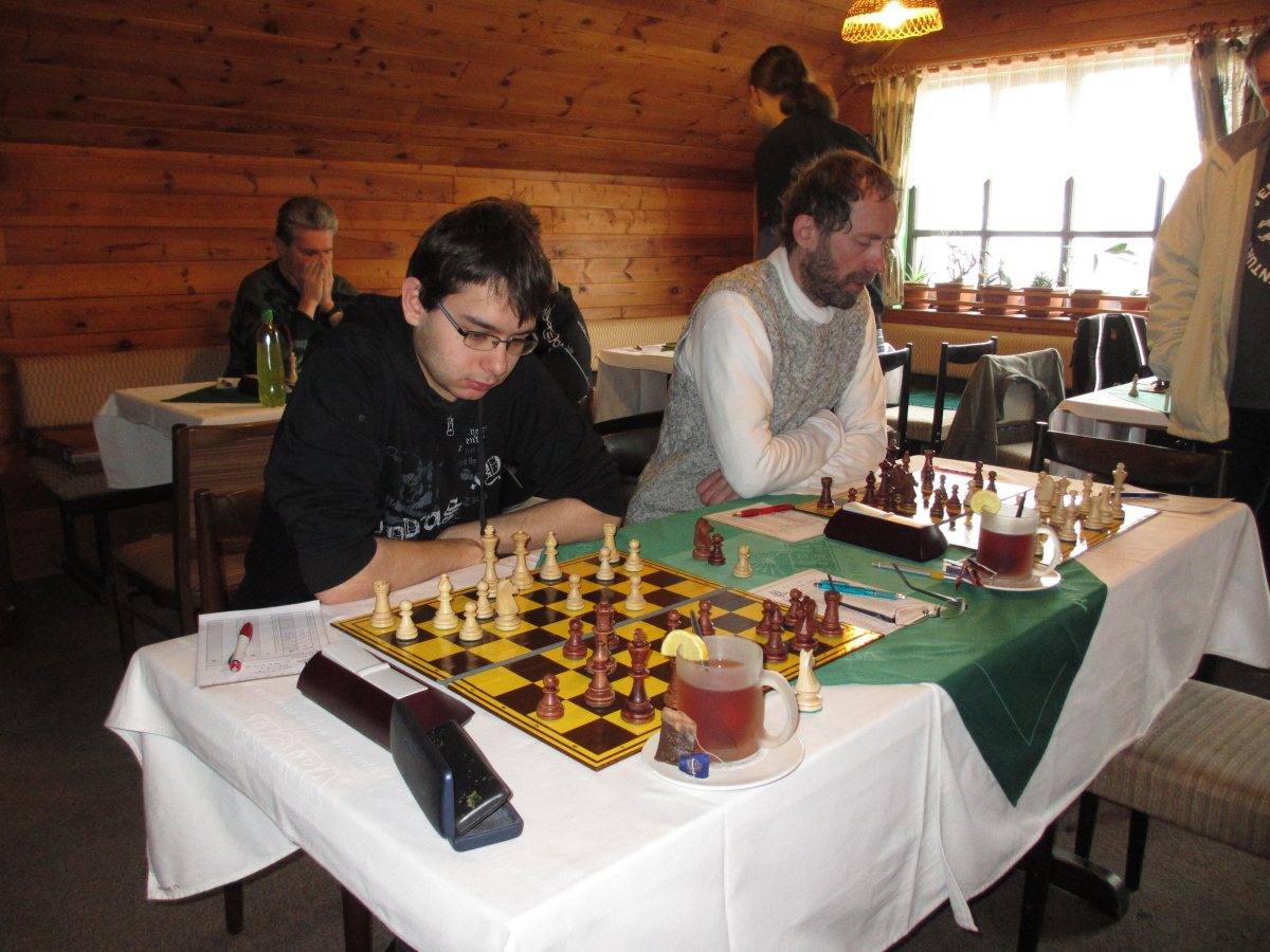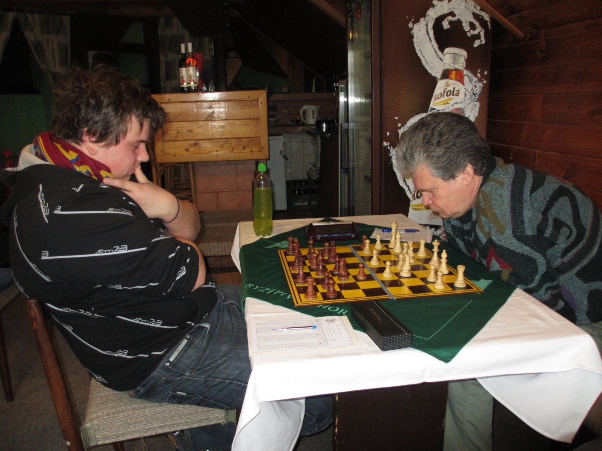 Maje kolo, odjíždím do Palírny zhlédnout kisny v utkání céčka s Letohradem. Dozvídám se však, že Vojta s Vítkem už jsou asi dvě hodiny pryč :-), a i jinde je dohráno, takže jen sleduju kousek poslední partie Jániš – Řehák (Petr v ostré koncovce vyhrál a vyrovnal tak na 4:4) a odjíždím zpátky.
