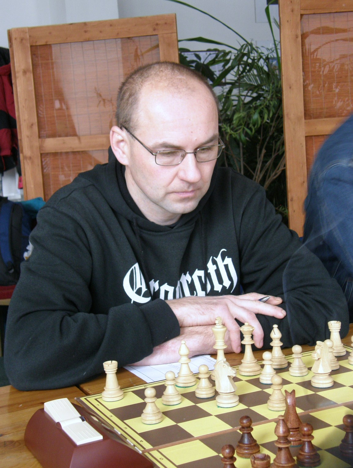 Na plnohodnotný zisk potřebujeme ze zbylých dvou partií urvat aspoň půlku, což by neměl být problém. Luboš Minařík, povzbuzen zlepšenými výkony v oddíláku, odebírá Romanu Hodkovi kvalitu (na dvojce se hrál jakýsi prapodivný Grünfeld), Poté se v pozici zamotává, podle diagnóz některých stojí v koncovce dokonce na… nulu, ale důležitý půlbod přeci jen získává. We are the champions!!!