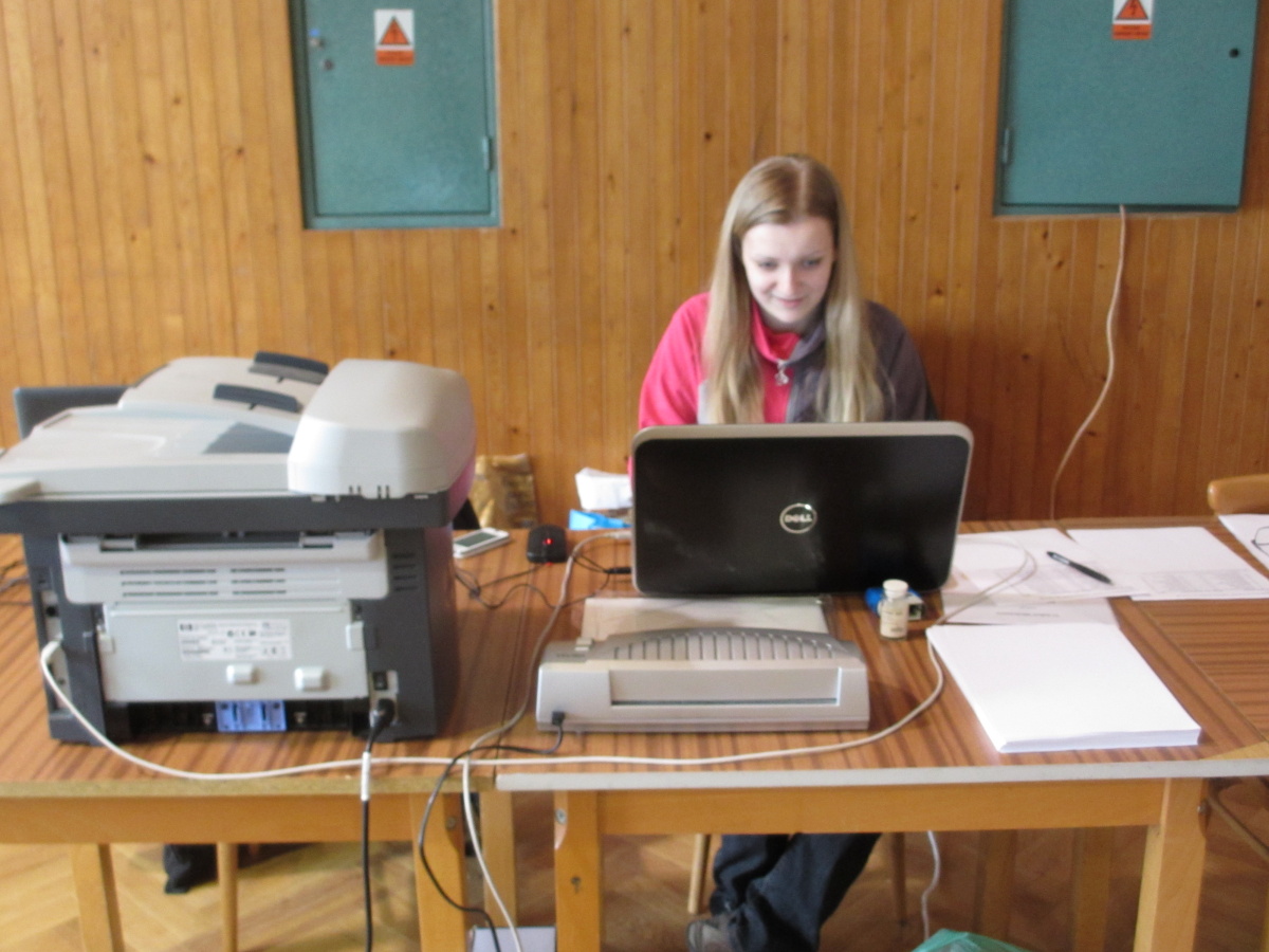 Po úvodních problémech nejen s tiskárnou se začalo chvíli po 9. Než jsem se stačila nadechnout, už chodily první výsledky desítek. Brzy se ocitly o kolo napřed před dvanáctkami. Skončily již v 13 hodin, asi o hodinu později už jsem vyhlašovala i dvanáctky, kde jsem si poprvé pořádně vyzkoušela, že přeřvávat celou tělocvičnu se budu muset ještě naučit.