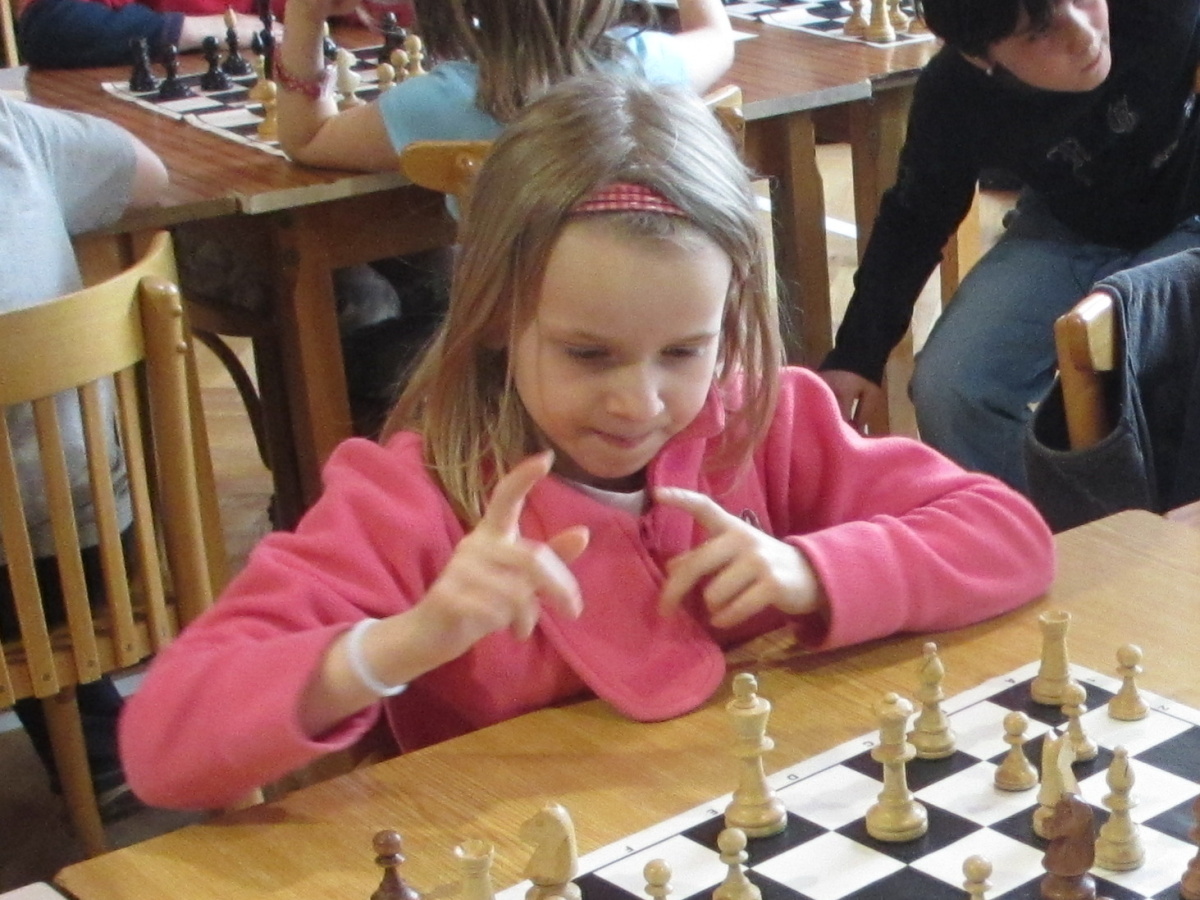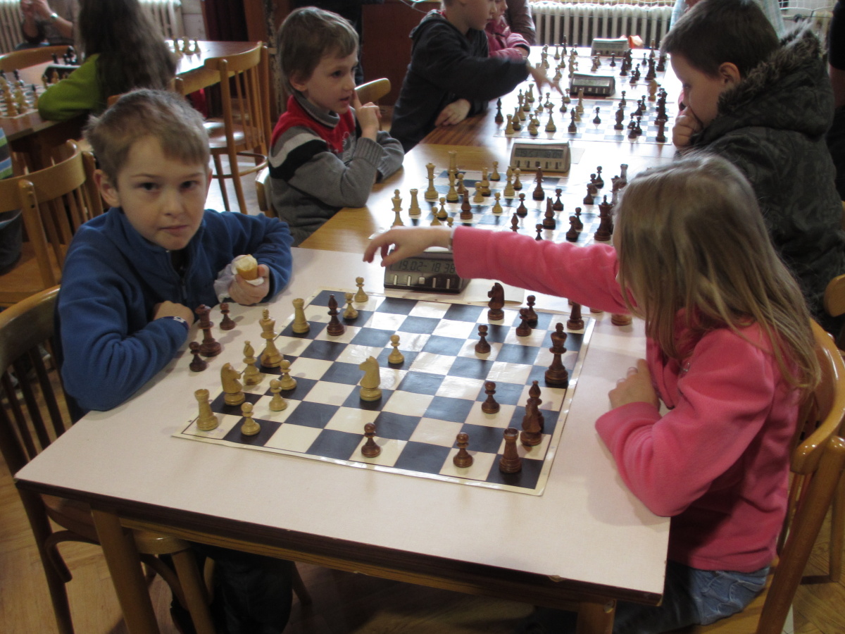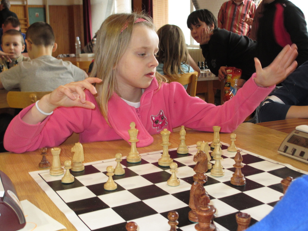 Na 7. místě se umístil Michal Píše se 4 body, nebýt zbytečné porážky v posledním kole mohl být ještě výš. Na 14. místě byla Dominika Šmajzrová se 3. body, bohužel kvůli horšímu pomocnému hodnocení skončila těsně 4. mezi dívkami, ale kdyby porazila Michala, nad kterým vedla o figuru, mohla si třeba odvézt i diplom. Stále víc figur dává, než sbírá, stejně jako poslední z našich Markétka Holásková. Ale hlavně že byly ty párky v rohlíku :-). Místo před ní se ještě umístila Micheala Křikavová, která si přijela vyzkoušet svůj první turnaj.