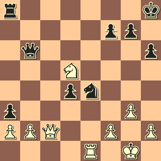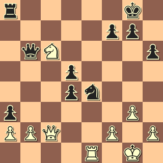 2. … d3! 3. Jxb6 Po ústupu dámy by přišlo braní na f2, pak i na b2. 3. … dxc2 4. Jxa8(?) Ani lepší tahy bílého nezachrání: po 4. b3 (bxa3) přijde Vd8 a Vd1, po 4. Jc4 Vc8 5. b3 Vxc4! 6. bxc4 Jc3