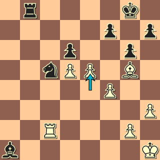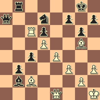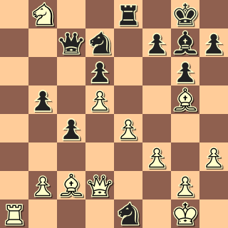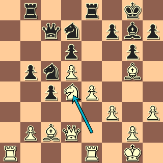 Tady bílý nevydržel s nervy a dal figuru radši hned: 28. Vxc4 bxc2 29. Vxc2 Jc5 atd.