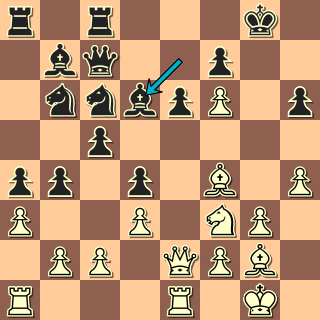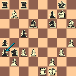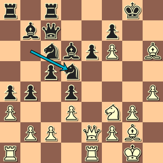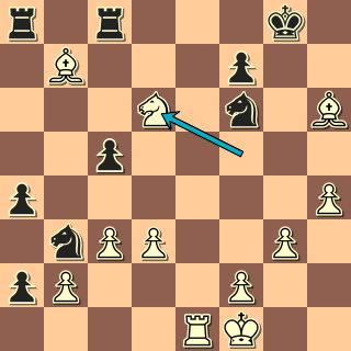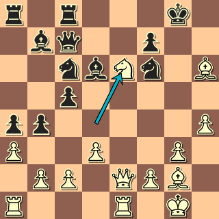 Bílý podle Nimcoviče překrývá silný bod e5 a chystá figurový útok na krále. Černý vládne na opačném křídle, jenže tam král není. Jsme v pozici, kde bílý vyvinul, co mohl, a zbývá už jen obětovat a vyhrát. Proč by ale měl černý prohrát? Jen kvůli drobnostem: oslabil se tahem h6 a Jb6 je dočasně vzdálen od obrany. Tahem d4 se ovšem hrozí vrátit zpět do hry (Jd5), je tedy právě vhodná chvíle nedat mu k tomu čas …