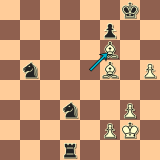 Z několika způsobů, jak situaci vyřešit, zvolila soupeřka 45. … Vd2 46. g4 Vxf2+ 47. Kg3 Jd6. Jednoho ze dvou střelců se stihne zbavit právě včas.