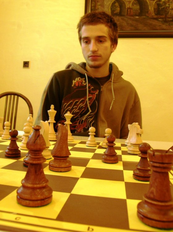 S Pavlem je to taková zahozená partie, nastavená figura je můj kiks, ke kterému jsem dospěl v době, kdy mi zbývalo 20 minut na 19 tahů. A tak jsem si vsugeroval, že „Musím zrychlit“, a tak jsem zrychlil. -:((