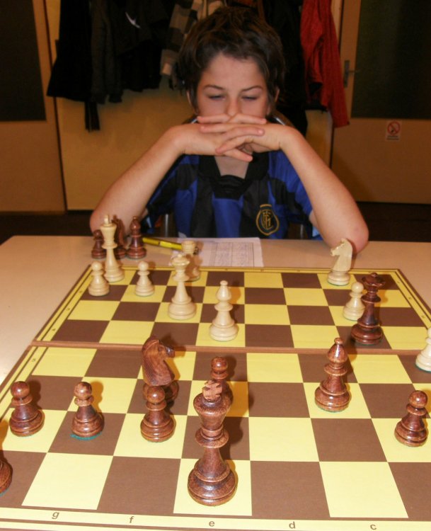 8. Holásek Vojtěch – Pokorný: To jsem srab na osmé 🙂 Ale letos se mi fakt nechce, navíc po loňské sezoně na první desce (vy pralese, pravdaže) se nehodlám o nedělích nijak vášnit. Vojtu Holáska asi chystal táta, na sicilku nasadil bílý útočník kavárenský morácký gambit d4. Pěšce jsem nebral (díky, nechci), po 2.e6 přešla pozice do zavřené francouzské, kterou bílý neuměl. Dal/obětoval dva pěšce, nějaké hrozby vytvořil, ale na tah přesně jsem stihl vše vykrýt a po vyšachování věže nebylo co řešit, což soupeř zakrátko uznal. 0:1, první skončená partie a zuřivý reportér si skrzeva fide ELO soupeře 1599 i drobně pomohl ku svému bídnému ratingu 🙂