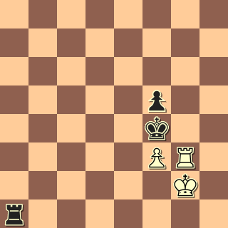 Černý má dva pěšce, ale pasívní věž a musí při realizaci převahy překonávat značné obtíže. 1. … g6? 2. Vc1! A na černého se šklebí hrozba Vcc7 a Vxh7. 2. … Ve3+ 3. Kg4 Ve4+ 4. Kg5? Velké oči, víc než opakování tahů bílý nemá. 4. … Ve5+ 5. Kf4 Za to jsem po partii Vojtu kritizoval, ale po 5. Kg4 už přijde h5+ a Vg7. 5. … Vf5+ 6. Vxf5 exf5. I tady má bílý ještě šance, černý král je odřízlý, občas bílý může pěšce rozbíjet postupem h4-h5. Pod dalších nepřesnostech však bílý prohrál, naštěstí to nechybělo. 0:1