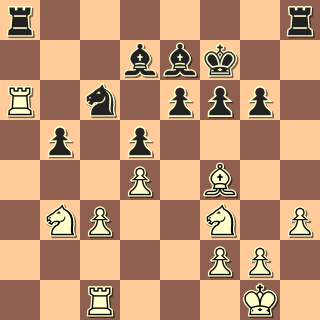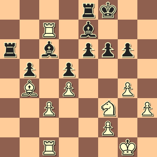 A tohle už je pro černého zlé, jeho věže jsou vázány ke krytí střelců, Sc6 je špatný, výměna na b4 pak pouští do hry Vc1. Černý skoro nemá tahy. 29. … g5 30. h4! Nádhera! Bílé figury drží ty černé pod krkem a nenápadný pěšáček h3 vstupuje s rozhodujícím účinkem do hry. Černý je na tom, jako vzpěrač, který vší silou drží závaží, když tu přiletí lehoučký motýlek … a v tu chvíli se vše zhroutí. 30. … Sxb4 To nejde, jenže co jde? 31. cxb4 Sa8 Smutný konec francouzského střelce. 32. hxg5 fxg5 33. Jxg5
