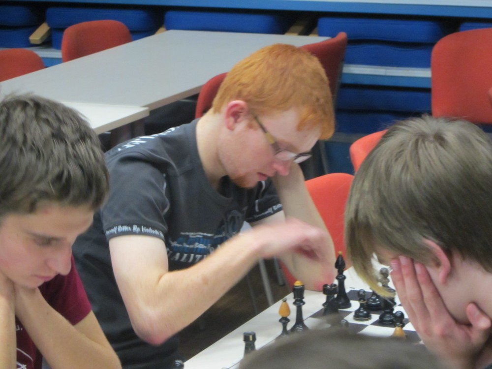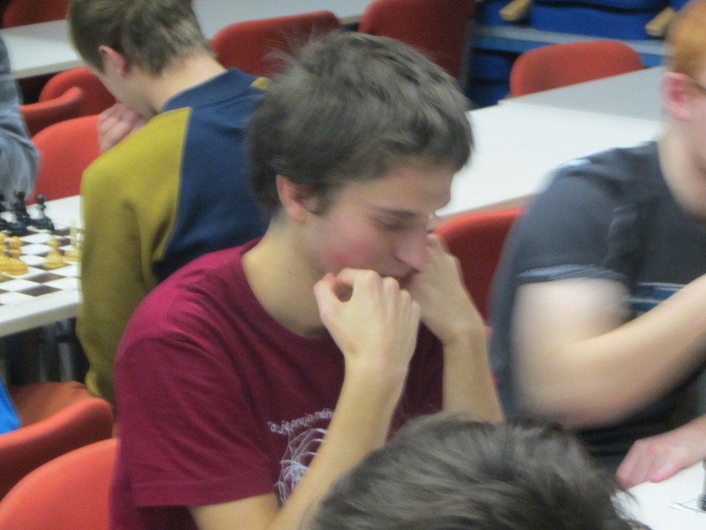 Když jsme ve třetím kole podlehli největšímu konkurentovi, Sportovnímu gymnáziu Pardubice, bylo tak nějak po turnaji. Své soupeře jsme poráželi, ale Pardubice to dělaly taky. Bylo jedině třeba pohlídat si „černého vzadu“ SPŠE Pardubice, utkali jsme se až v předposledním kole (oproti losu byla kola pomíchaná), kdy jsme věděli, že 2:2 by mohlo stačit a přes dvojí zaváhání jsme opravdu 2:2 uhráli. Do posledního kola jsme měli 1,5 bodu náskok a výrazně lepší los, takže zakrátko nebylo co řešit, jen to, jestli chytneme vlak ve tři (podařilo se v poslední vteřině, proč vždycky ve Svitavách dobíháme tak natěsno? 🙂 ).