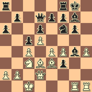 1. d4 Když už útočit po háčku, tak radši v Sämischovi, než proti dračí variantě. 1. … Jf6 2. c4 g6 3. Jc3 Sg7 4. e4 d6 5. f3 O-O 6. Se3 Jbd7 7. Dd2 c5 8. d5 Je5 9. O-O-O a6 10. h4 h5 11. g4 hxg4 12. f4 Jf3 13. Jxf3 gxf3 14. Sd3 Sg4 15. Vdg1 Dd7?