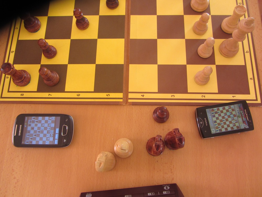 Hrálo se 9 kol švýcarským systémem, 2x10min + 2s/tah. V knihovně, kde byly umístěny přední desky, se hrálo korektněji, v 1.B vládla divoká atmosféra plná hecování, kibicování a úsměvných nekorektností. Zaznamenal jsem tam mj. partii v disciplíně advanced chess, kde oba hráči po vzájemné domluvě používali program v mobilu a rozhodovala vlastně jen rychlost, s jakou byli (spíše nebyli) schopni tahy přenést na desku :-).