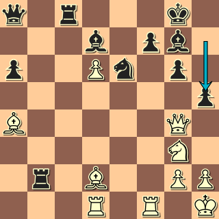 Fantazie bílého je úchvatná. Dovoluji si nazvat tuto pozici zábavně pyrotechnickou :-). Všechny figury lítají ve vzduchu, visí černý Sa4, Je6, pg6, ale zejména bílý Jh5, Vf7, Vd1, ale všechno jejich braní je špatně, k výhře vede (kromě počítačového 30 … Vf8) jenom 30. … Vxd2!! Počítal jsem to čtvrt hodiny, bílý už nic nemá. 31. V7f1 je rezignace. 31. … Sxd1 32. Dxe6+ Kh8 33. Jf4 Sh5 34. d7 Vf8 35. De7 a bílý zároveň překročil čas.