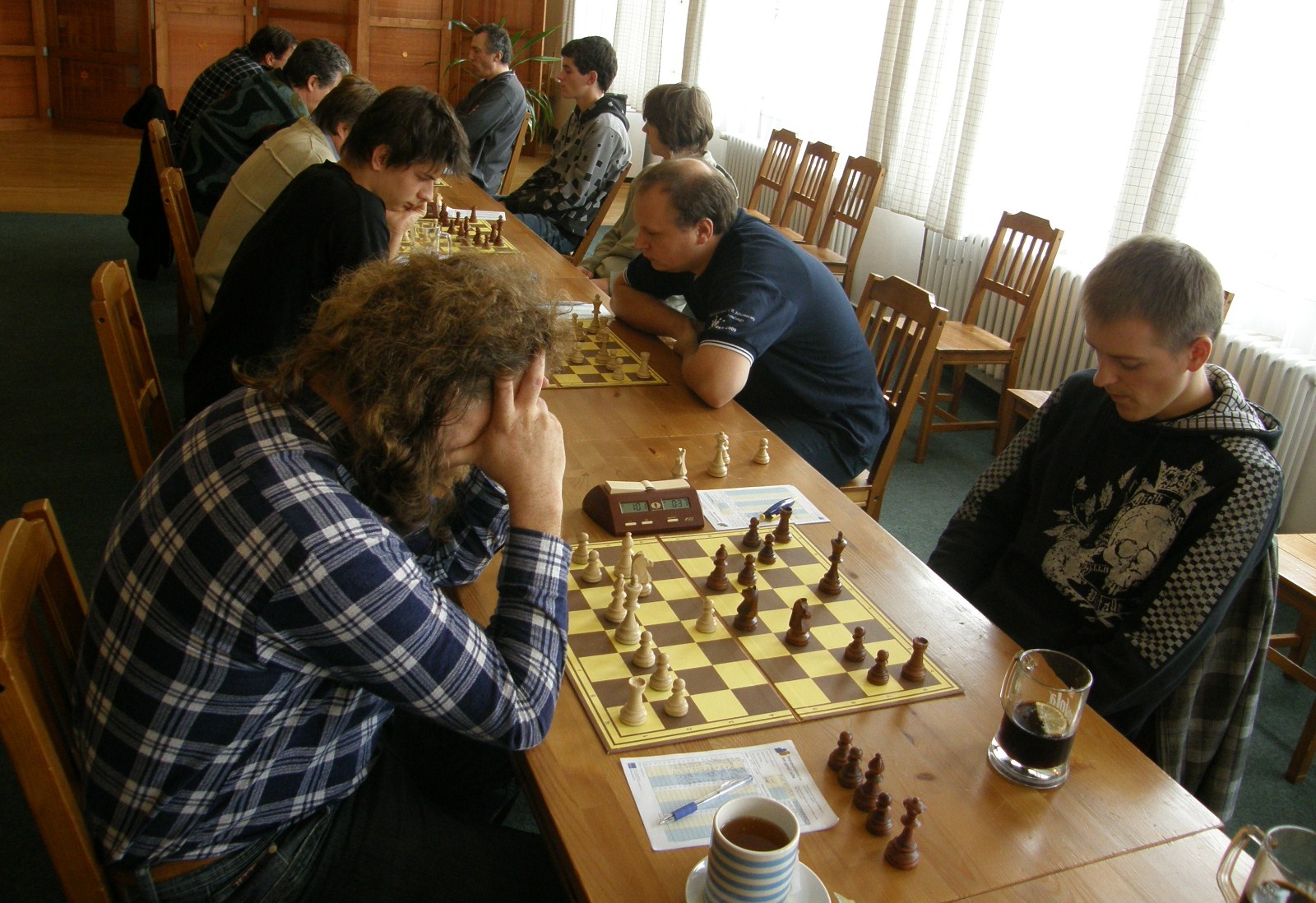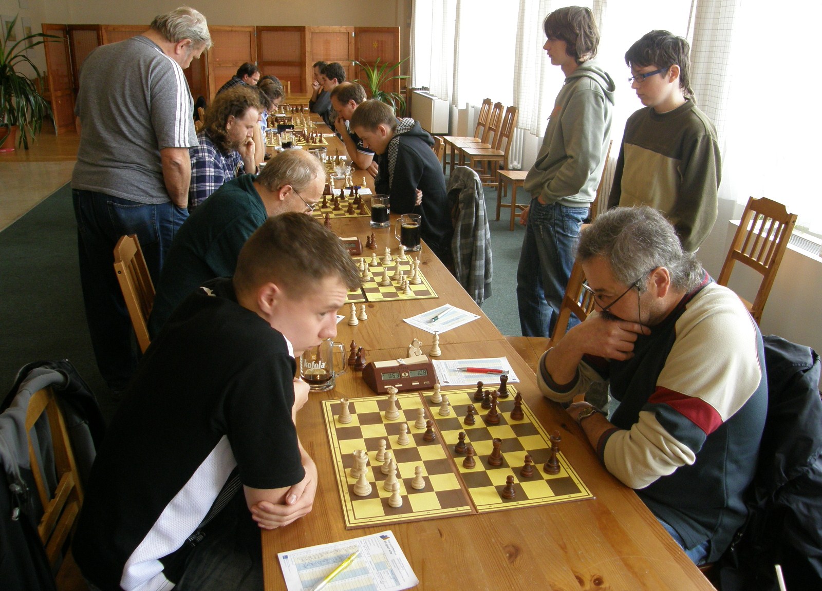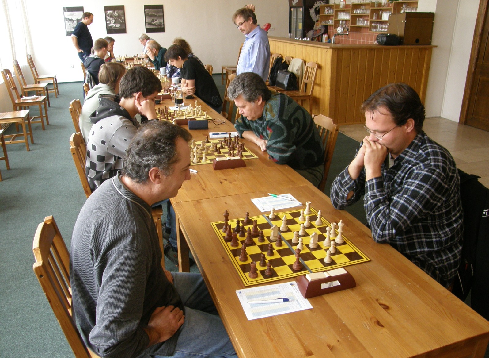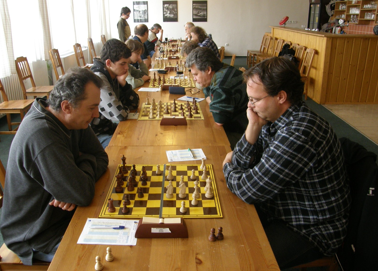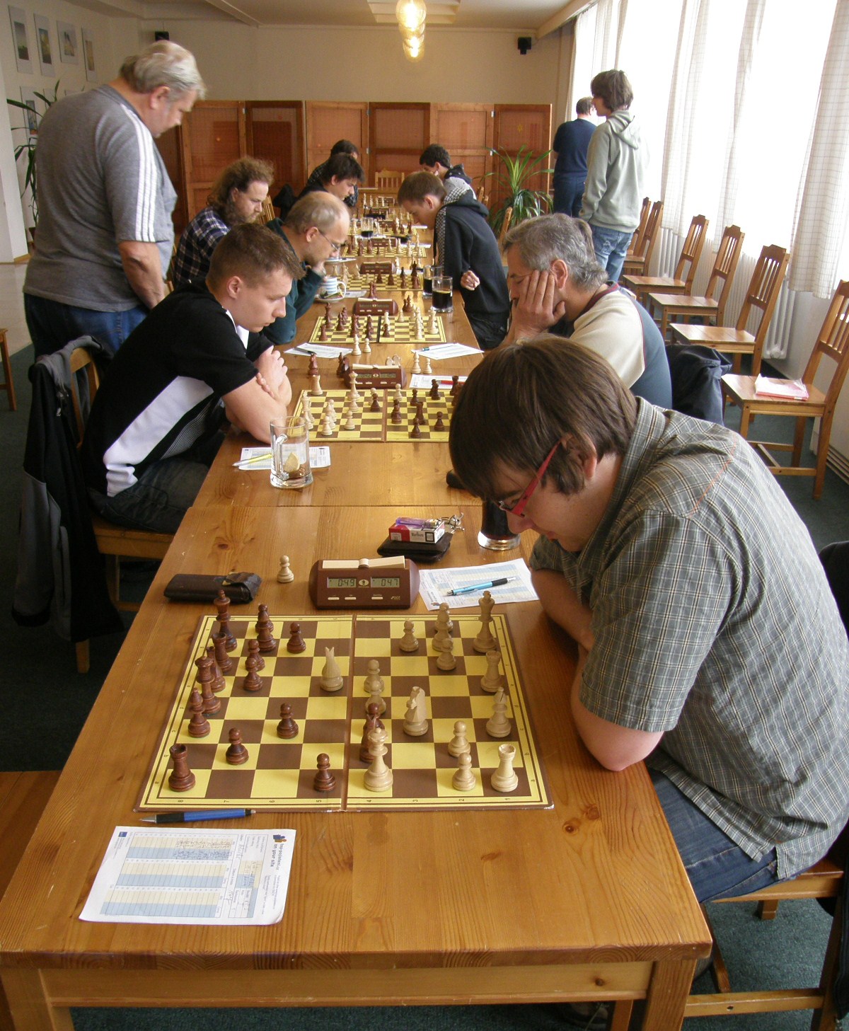Utkání bylo zahájeno v přátelském duchu v naší již pro družstvo B „domácí“ místnosti salonku SMC klubu v ÚO a to úderem 10té hodiny. Když to vezmu v krátkosti od první šachovnice. Blaško – Volf nejasná pozice pro Blaška, chvílemi jsem myslel že dal jen tak 2 pěšce v zahájení, ale jeho „šachy“ no spíše konstruktivní prasárny slavili úspěch a patrie skončila remízou. Na druhé desce se pokoušel bránit nejlepší hráč B družstva loňské sezóny a hráč s nevyšším FIDE Elem v družstvu černými figurami Pavel Kylar proti Michalovi Zenertovi. Dle jeho slov chvílemi jsem si myslel, že toho pěšce navíc ubráním. Bohužel ne. Prohrál. Třetí deska byla doslova zkouška ohněm. Jan Mareš proti Šmajzrovi. Pěkná pozice, taková přetlačovaná. Jenda hrál trochu víc obranně než se v dané pozici asi mělo. Martin prokázal svou kvalitu a zaslouženě vyhrál. Další z rodiny Marešů tentokrát Petr mladší si chtěl trochu zahrát proti Pavlu Holáskovi. Opravdu jen chtěl. Nezahrál si :-(. Na páté se utkal David Kameník proti Martinu Pečínkovi. Na Martinovi bylo vidět že se nesešel s myšlenkami a jak sám řekl, hrát co tah to blbost. No blbosti to nebyly doslova, ale zrovna přesně to nehrál. Partie se mi líbila asi nejvíce, bylo to zamotaný až do koncovky. Tu David nedokázal vyhrát a partie skončila ½. Šestá šachovnice patřila Dalšímu z rodiny Marešů a to za A družstvo Mareši Petru st., který hrál proti Petru Jánišovi. Zahráli si pěkně bod pro zkušenějšího. Na sedmé šachovnici se bránil zuby nehty Kodytek proti Švubovi, ale taky z toho pro družstvo B nic nebylo. Osmá šachovnice přinesla vytrvalý útok Martina Poslušného proti Tomáši Mastnému. Martin útočil, útočil až vyutočil bod. Celkové skore 1-7.