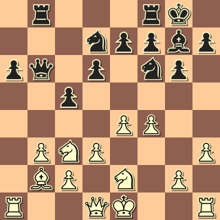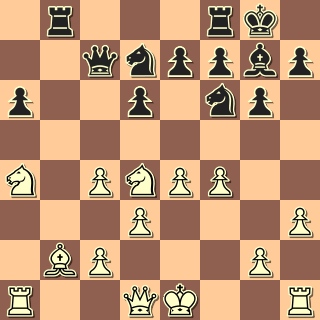15. Jd4? Už je to tady, bez velkého rozmýšlení. I po 15. bxc4 vychází Vxb2, ne ale tak výhodně jako v partii. 15. … Dc7 16. bxc4 Ještě byl čas na rochádu, ale bílý se dosud ničeho nebojí …