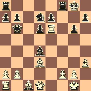Bílý má sice centrum, ale právě na něj černý tlačí (konkrétně na d4), zatímco možnosti aktivity bílého nejsou zcela jasné. Bílý si vybral 12. e5?!, což mi připadalo a připadá zbrklé. Bílý nemá předpoklady pro to, aby své centrum takhle exponoval. Po 12. … Jd7?! zahrál dokonce 13. e6? (13. Se3!), což po 13. … fxe6 14. Vxe6 Jxd4 15. Jxd4 Sxd4 vedlo k následující pozici: