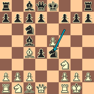 1. e4 e5 2. Jf3 Jc6 3. Sc4 Jf6 4. d4 „To už jsem někde viděl,“ říkávají někteří ústečtí hráči. „To už jsme někdy hráli, že?“ 🙂 4. … exd4 5. 0-0 Sc5 6. e5 Je4??