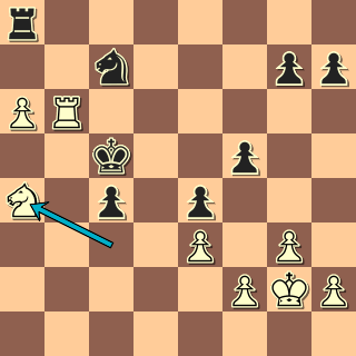 Tady jsem byl najednou spokojen, moje aktivita vzrostla, soupeř musí myslet, ale měl na to už jen dvanáct minut … 32. Je2 Va8 33. a6 bxa6 34. Vc6! Hezký mezitah. 34. … Je6 Hlavně nedopustit nějaké Jf4 a mat v centru desky. 35. bxa6 Kd5 36. Vb6 Jc7 37. Jc3+ Kc5 38. Ja4+