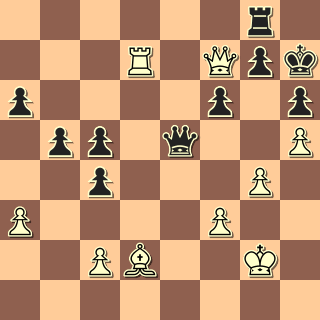 Tady mohl zahrát 38. … c3!, vyhnat střelce od důležitého pole e1 a dát věčňák. Po 38. … De2+? 39. Kg3 De5+ 40. Kh3 De2 41. Dxf6! už se věčňák nekonal. 🙁