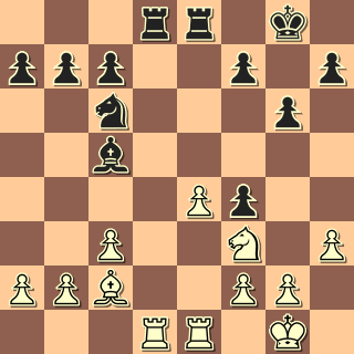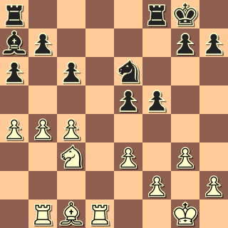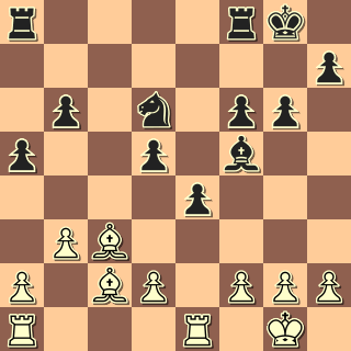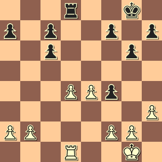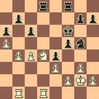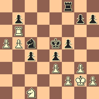 Já jsem hrál po roce opět černými s Buchcarem (2144). (Vloni jsem s ním prohrál po zbytečných chybách.) Hrál anglickou, já výstavbu s e5 a f5. Soupeř nastoupil na dámském křídle, já jsem trochu pohrozil na královském, po výměně dam vznikla rovná koncovka: