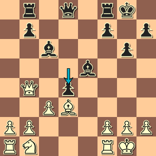 a proto 7. Sxb8?! Vxb8 8. Da4+?! Sd7 9. Dxa7 0-0. Nejdřív jsem měl v plánu Je5 a vyměnit Sd7, ale pak jsem si říkal, že tak krásného koně za tak špatného střelce je škoda. Jak jsem se mýlil …10. Sd3 Sc6 11. Dc5 Jd7 12. Db4 Dámě se nic neděje, už jen rochovat, dovyvinout se a prosadit pěšce dámského křídla … 12. … e5 13. dxe5 Jxe5 14. Jxe5 Sxe5 15. 0-0 d4!