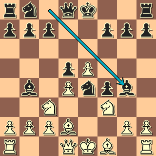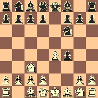 S hrozbou Jxe4 se černý vypořádává originálním způsobem. 8. Jxe4 dxe4 9. Sxb4 Jc6!? Černý je, zdá se, mistr mezitahů :-). 10. Sa3?
